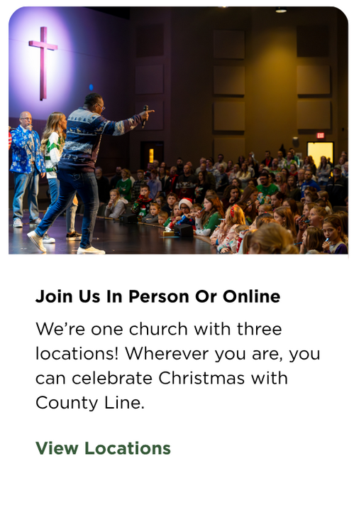 At County Line, we love Christmas! Whether it’s the festive décor, the songs of the season, the sweet treats, or simply connecting over a warm cup of coffee or hot chocolate—this time of year brings so much joy. But even more than that, we love retelling the greatest story ever told. That’s why we’re looking forward to celebrating Christmas with you, your family, and your friends. No matter what’s happening around us, we have a reason for hope—and His name is Jesus. This Christmas, find a little extra joy. We believe you’ll discover it when you spend Christmas with County Line!