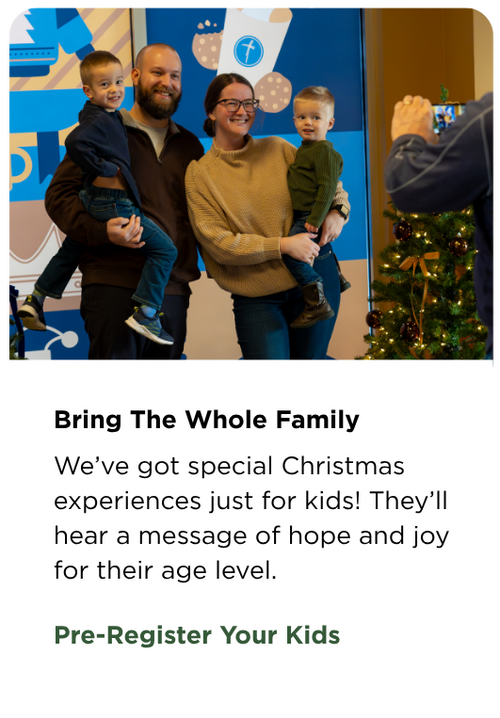 Join us for a beautiful Christmas Sunday celebration filled with the sights and sounds of joy! No matter who you are, where you’ve been, or what this season feels like for you, you are invited to come as you are on Sunday, December 21, and experience the hope of Christmas. Together, we’ll unwrap God’s greatest gift to us through joyful music, meaningful worship, and a Christ-centered message designed for the whole family. Nursery–PreK is available at all campuses, making this a welcoming and accessible morning for everyone to gather, celebrate, and encounter the love and peace of Christ.