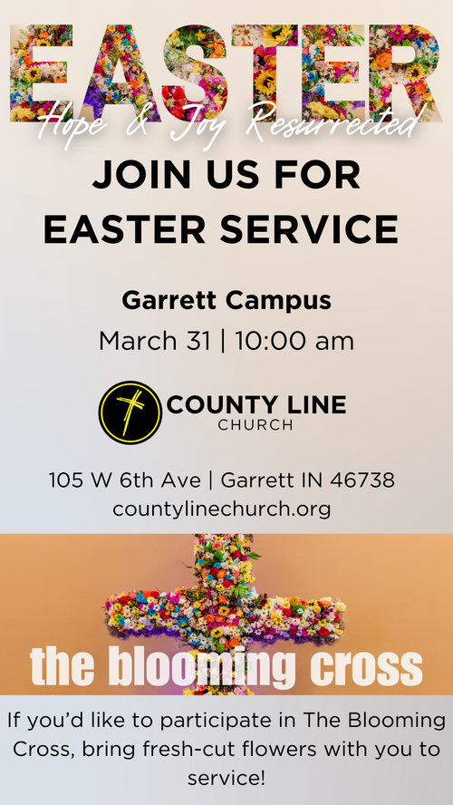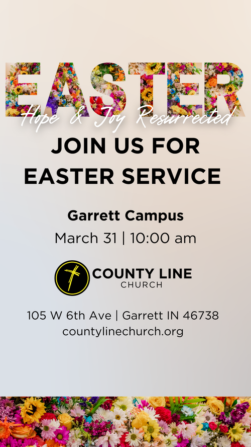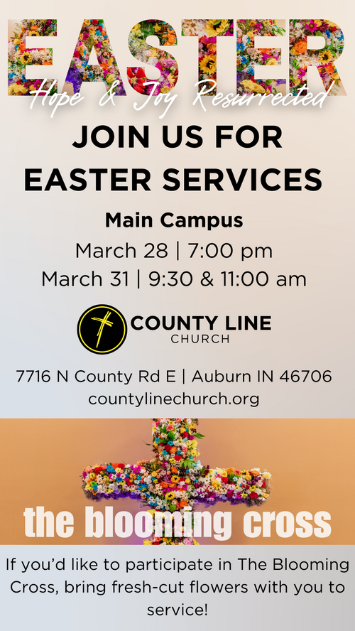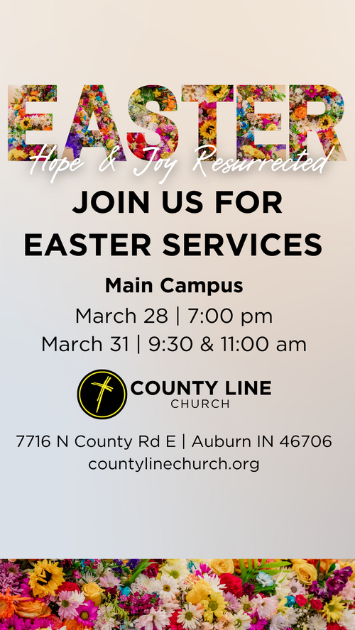 Is there someone in your life that you've been thinking about inviting to church? Invite them to Easter at County Line! Use the digital invites below to share our Easter service times and locations with your friends and family. Click on the image of the invite you would like to share, then right-click (or hold down on the image on your phone) and save the image to your camera roll.