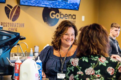 Offering whole bean and ground coffee, apparel, snacks, hot and cold beverages. Serving in the cafe to prepare beverages, serve and fill orders.