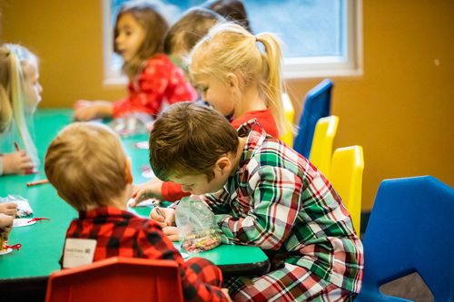 Please come to the Kids Check-In Center on your first visit. We will collect important information and get your cell number. You will be given name tags and a coded pick-up slip. Preschoolers are divided into groups by their age. They rotate between centers for craft, snack, Bible time, social play. After service, they may be picked up in their original drop off room. Please present your coded slip to the group leader for their dismissal.